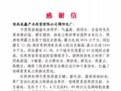 國網(wǎng)陜西省電力有限公司向錦陽電廠發(fā)來感謝信